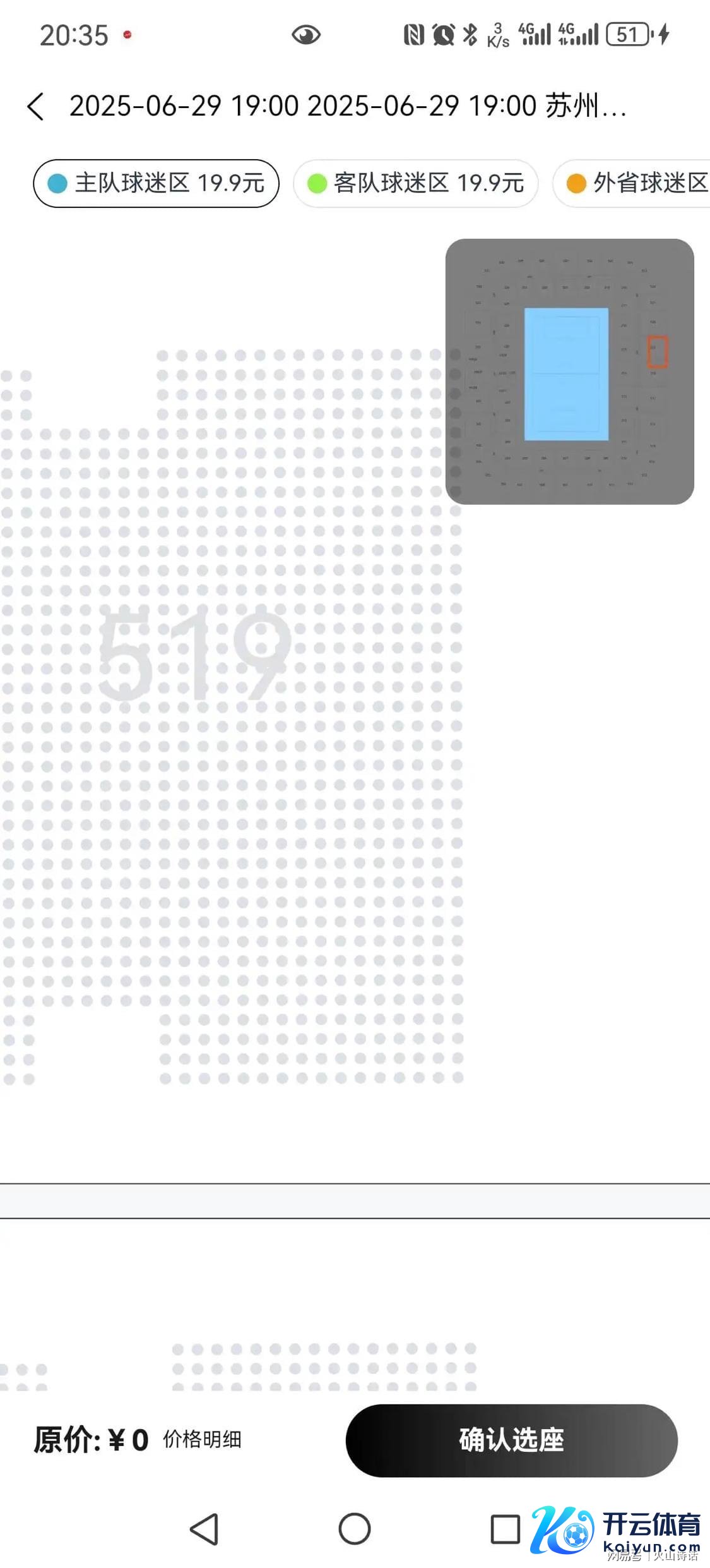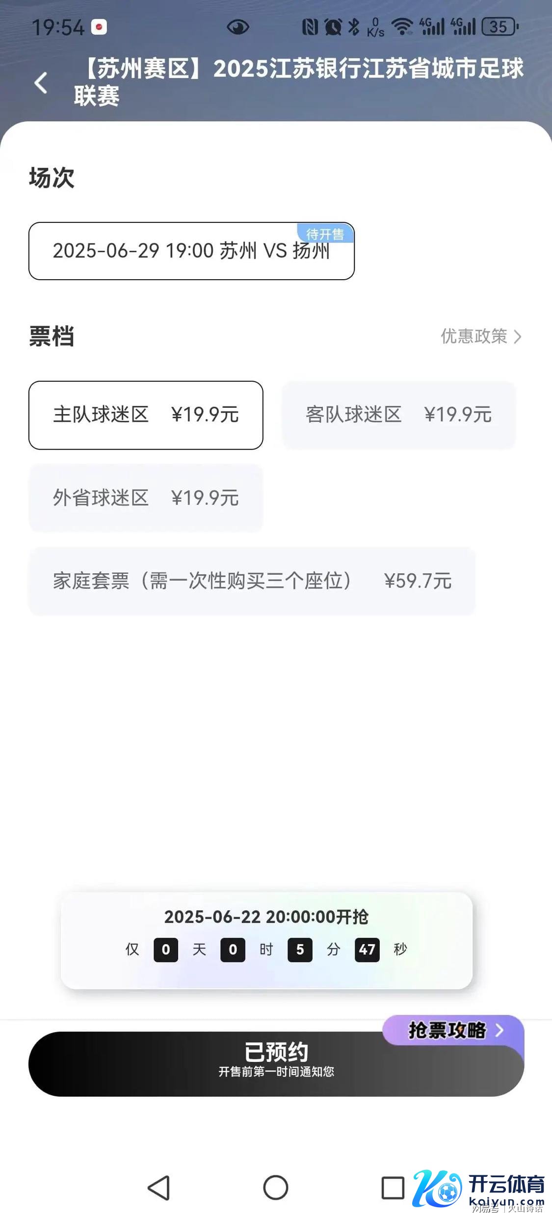 从图片来看,这是6月29日苏州与扬州的一场比赛。这名网友开拓了开售预约,仅仅万万没猜测,19.9元的苏超球赛门票,一开售就被抢购一空。界面点进去,座位全是灰的。