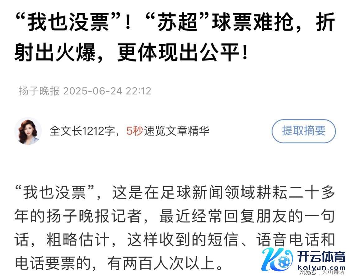 也有当地媒体在6月24日报说念,“我也没票”!“苏超”球票难抢,折射出火爆,更体现出公说念!