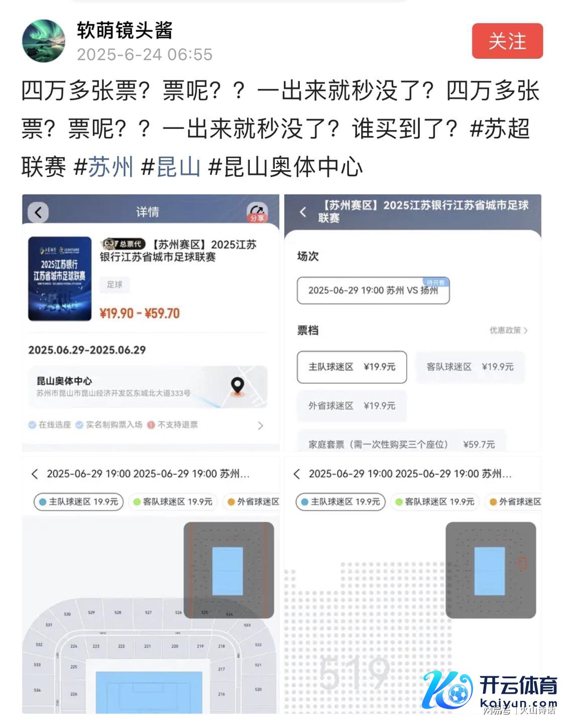 6月24日有网友发帖,四万多张票?票呢??一出来就秒没了?四万多张票?票呢??一出来就秒没了?谁买到了?#苏超联赛 #苏州 #昆山 #昆山奥体中心