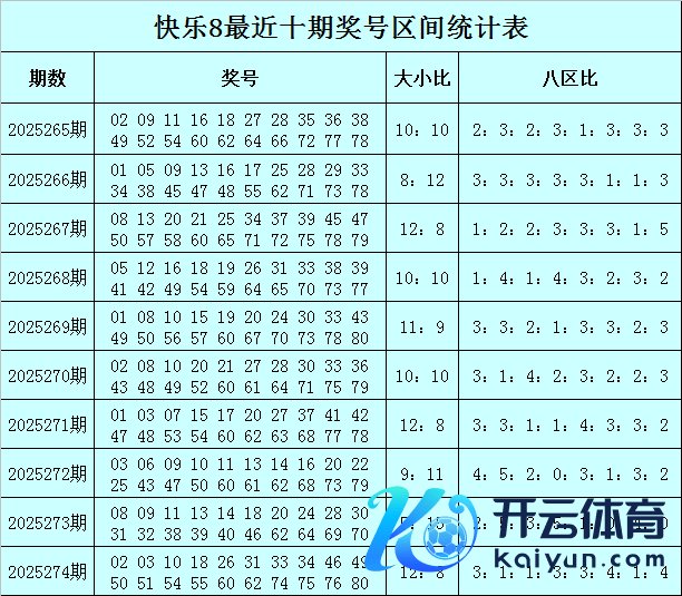 福彩痛快8第2025274期奖号为:02 03 10 18 26 31 33 34 46 49 50 51 54 55 60 62 74 75 76 80,其中奖号大小比为12:8,八区比为3:1:1:3:3:4:1:4。