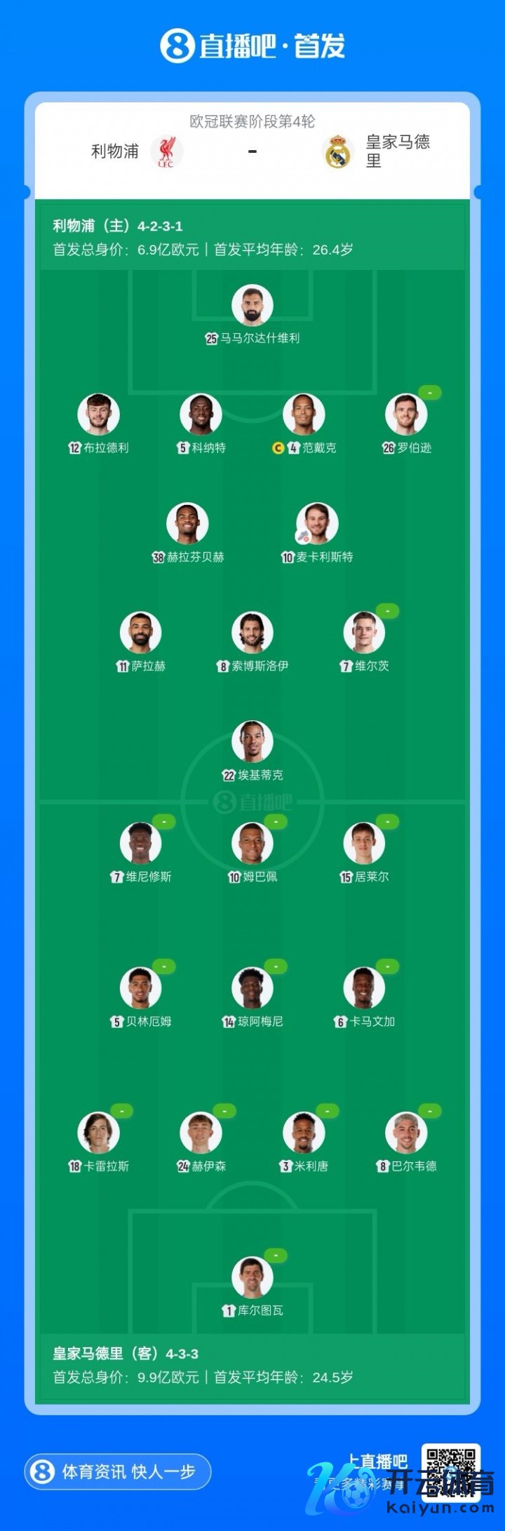 11月5日讯 欧冠联赛阶段第4轮焦点战,利物浦主场迎战皇马比赛行将打响。赛前首发出炉。