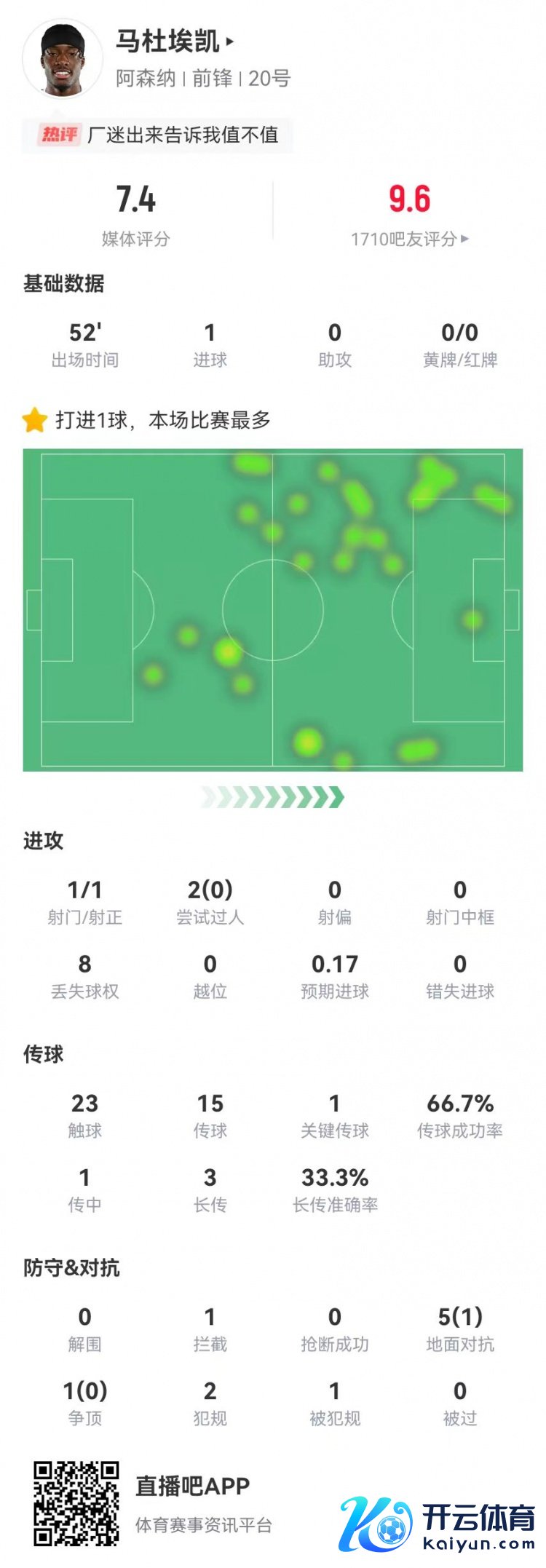 11月27日讯 阿森纳在本轮欧冠3-1力克拜仁,马杜埃凯本场数据如下: