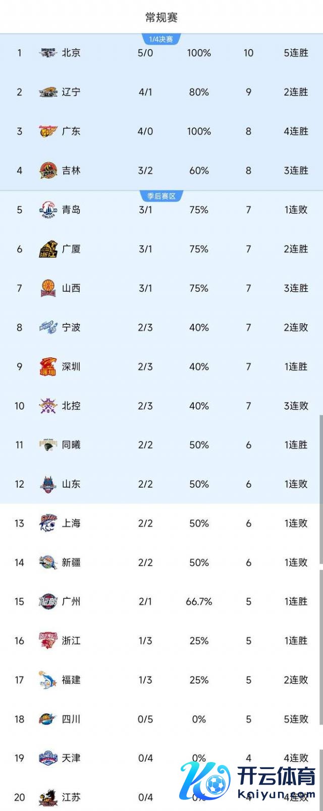 当今澳门买球网体育信息,只须北京队、广东队保抓全胜战绩,辽宁队依然输过一次,另外四川队、天津队、江苏队皆是开局全败,卫冕冠军广厦队四轮 3 胜 1 负,暂时排行第六位。