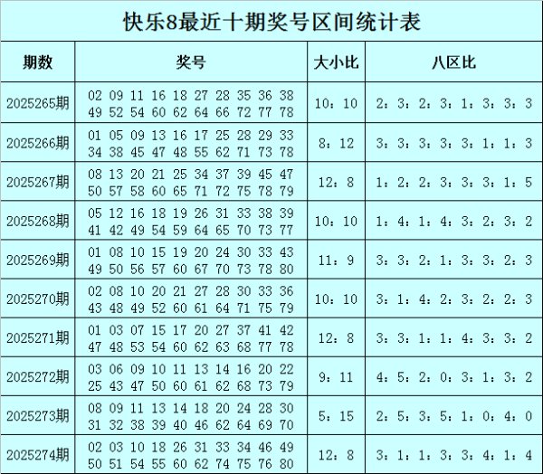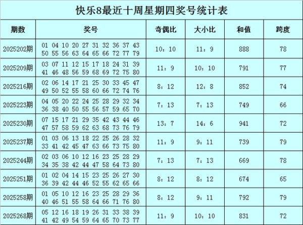 福彩满足8第2025274期开奖转头:0203101826313334464950515455606274757680澳门买球网体育信息,其中奖号和值为889,跨度为78,奇偶比为7:13,大小比为12:8。 福彩满足8第2025268期(上周四)开奖转头:0512161819263133383941424954596465707377,其中奖号和值为831,跨度为72,奇偶比为11:9,大小比为10:10。 和值分析:最近10周四和值出现限度在669-831区段,和值振幅为272个点位,和值...