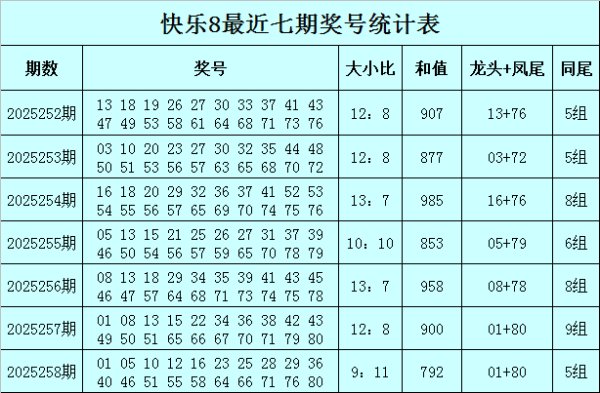 福彩悦目8第2025258期开奖回来:0105101216232528293640465155586466717680,其中奖号大小比开出9:11,和值为792,跨度为79,包含5组同尾号:104080、015171、052555、1636466676、2858。 悦目8第2025259期奖号分析 大小分析:上期奖号大小比为9:11,走势基本均衡,近7期开奖大小比例为81:59,大号总体走势较热,本期看好大号较上期热出,参考大小比13:7。 和值分析:上期和值下落108个点位开出792,最近7...