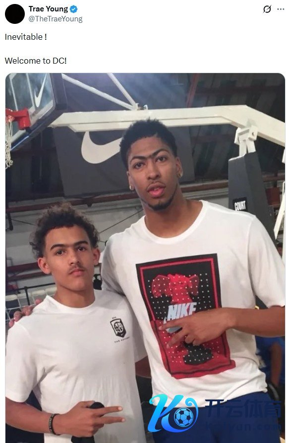 特雷·杨晒出一张我方和浓眉的夙昔合照,配文写谈:“这是一种势必。宽待来到华盛顿。”