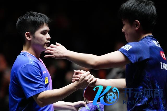 11月23日,林诗栋(左)在比赛后与张本智和执手。 新华社记者 张笑宇 摄