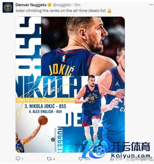 此外,约基奇还在这一节迎来了新的里程碑:855次抢断,他升至掘金队史抢断榜的第三位。这一确立不仅阐发注解了他在珍视端的孝顺,也体现了他对比赛的全见识约束力。