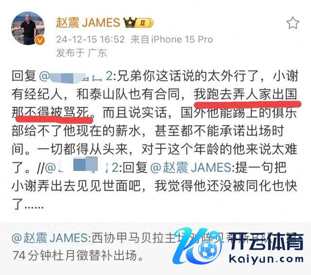 有球迷给赵震提提出:提一句把小谢(谢文能)弄出去见见世面吧,我合计他还莫得被同化,也快了…