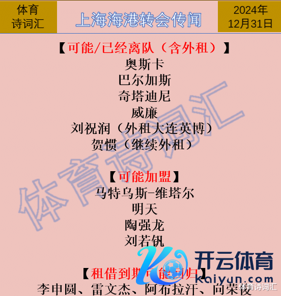 2024年的终末一天行将截至,中超各队皆进入引援的冲刺阶段,解放身的原土球员成为各队竞争的焦点,而球队的踏实则是球员加盟的决定性成分,云南玉昆、大连英博、武汉三镇等七八只球队迎来大换血,而山东泰山等少数球队则在进行瘦身活动,少进多出,还有部分球队则只会微调威望,比如上海申花在表里援上皆变动不大,而上海海港在原土球员上也不会有太大变化,以稳为主。