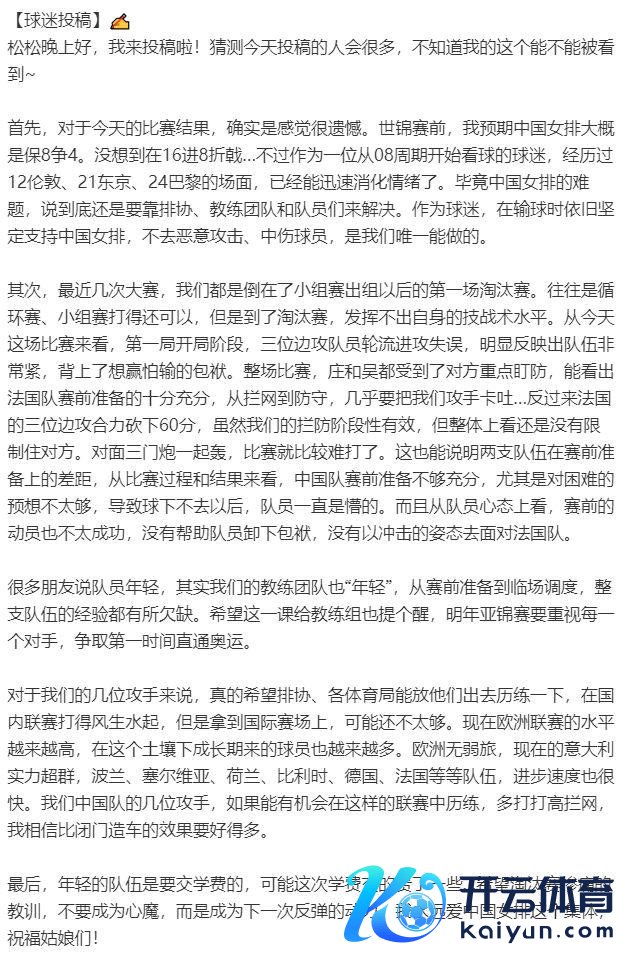一位从 08 年奥运周期就开动看女排比赛的老球迷进行了投稿,他归来了一个新的念念路:教授团队也很"年青",从赛前准备到临场调停整支队列教会齐有所欠缺。
