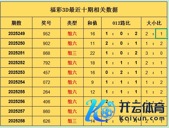 开奖回归:福彩3D上期奖号为626,其中奖号012路比为2 : 0 : 1,大小比为2 : 1体育录像/图片,和值为14。