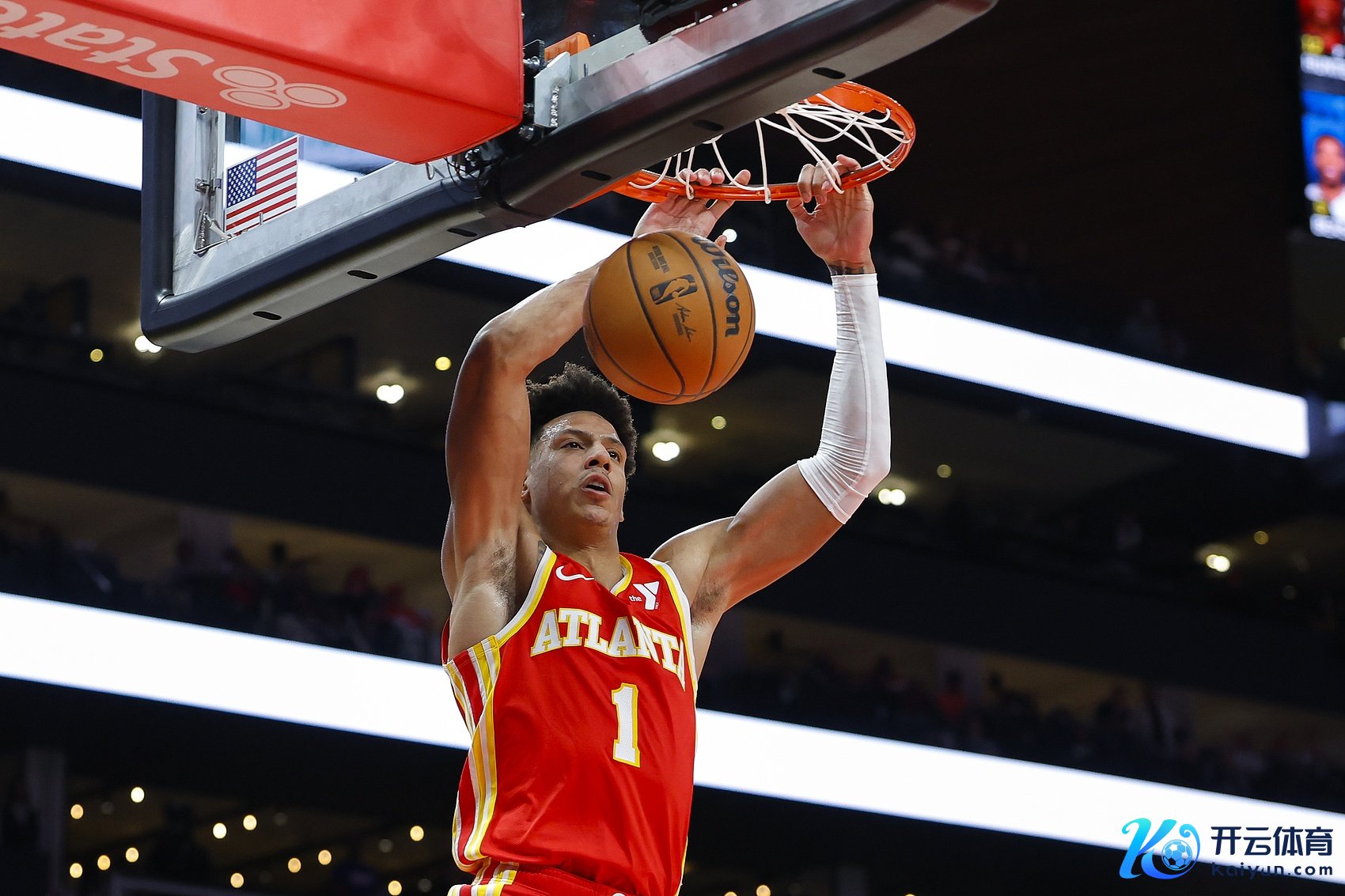 本场比赛,杰伦-约翰逊有着自由且全面的进展,尤其是特雷-杨伤退后,他又攻又传带队耐久保不断朝上。