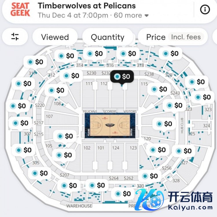 好意思记Scott Friedman晒出了票务网站上鹈鹕本场比赛的票价情况,其中不少座位王人是写着免费的价,包括部分基层看台的座位。