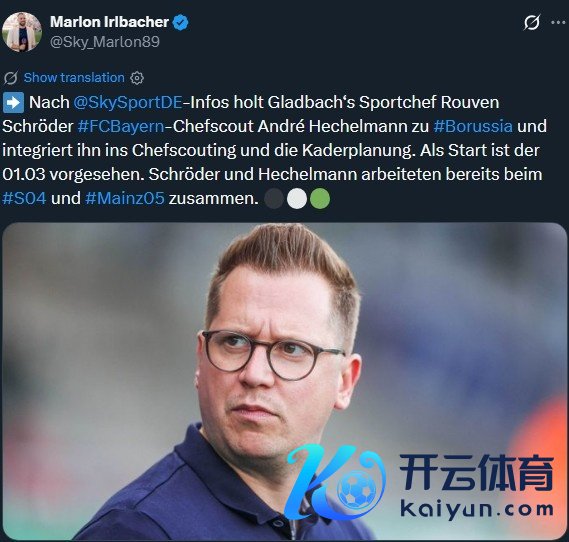 报谈称,门兴格拉德巴赫的体育期骗鲁文·施罗德将拜仁慕尼黑的首席球探安德烈·黑歇尔曼带到俱乐部,并让他融入首席球探体系和威望计较中。