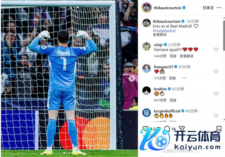 库尔图瓦社媒晒出比赛中庆祝的像片体育录像/图片,配文:“这即是皇马!”