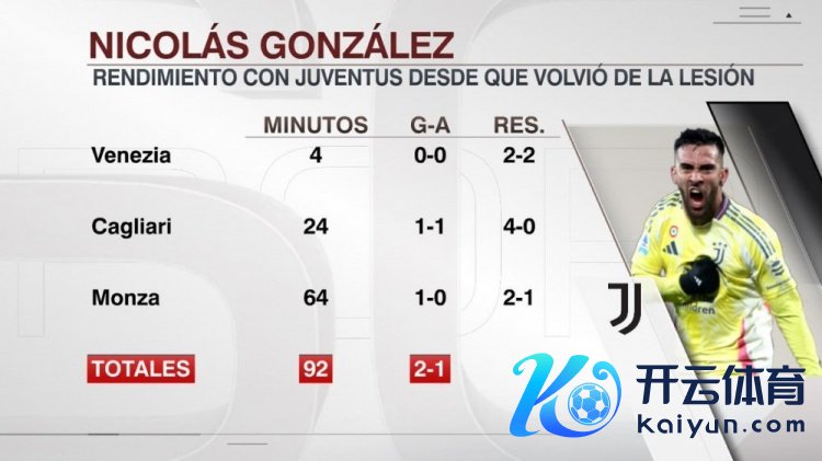 12月23日讯 介意甲第17轮比赛中,冈萨雷斯攻入制胜进球,匡助尤文客场2-1打败蒙扎,他当选本场比赛最好球员。