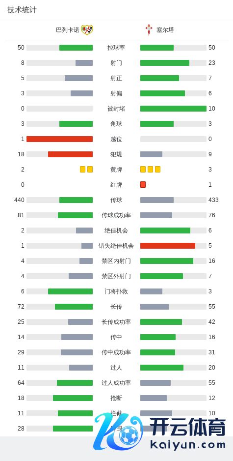 下半场补时第4分钟,塞尔塔球队马科斯-阿隆索吃到第二张黄牌。