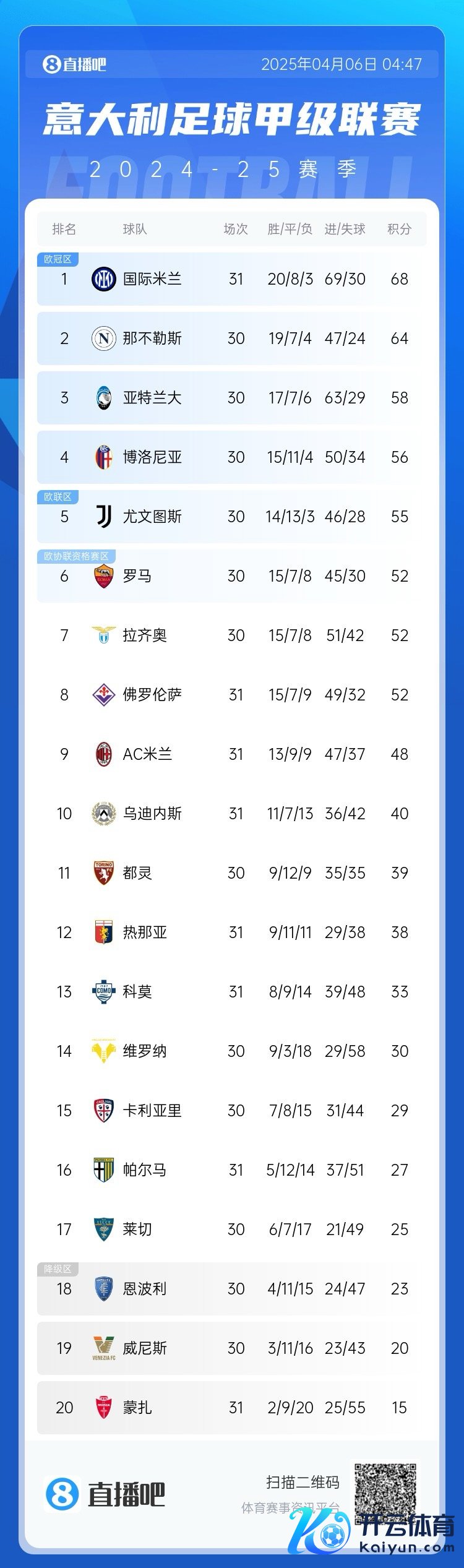 04月06日讯 意甲第31轮,国米2-2战平帕尔马,丢掉2分,那不勒斯追分的契机到来。
