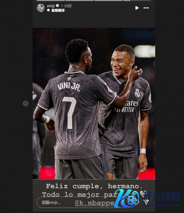 维尼修斯晒出两东谈主合照,并配文:“生辰自恃体育赛事直播,昆玉。祝你一切获胜@姆巴佩”。