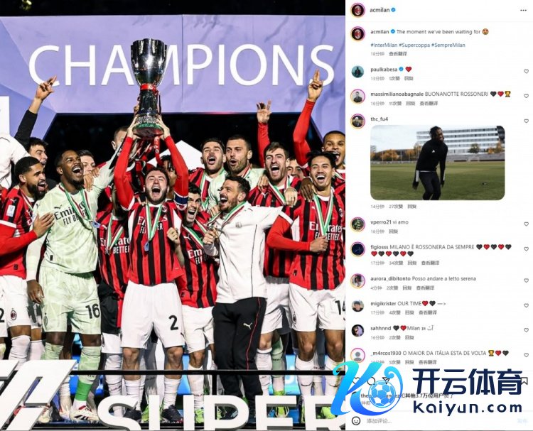 1月7日讯 今天凌晨,AC米兰3-2逆转打败国米夺恬逸大利超等杯冠军,赛后,米兰官方Instagram晒海报庆祝。