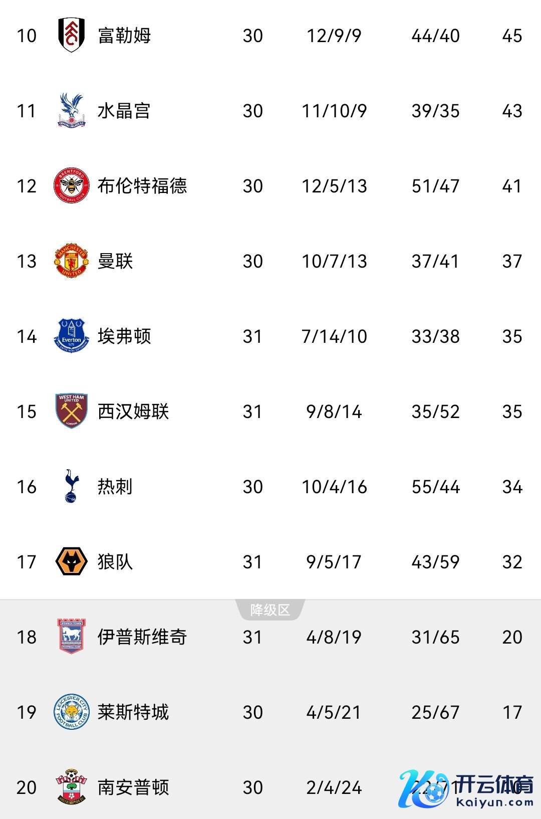 04月06日讯 在昨天的英超比赛中,埃弗顿1-1逼平名挨次二的阿森纳,在积分榜上暂时升至第14,而莫耶斯的老东家西汉姆联则只排在第15。